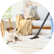 Vlooien nestelen zich graag in kiertjes, spleten of een tapijt. Het is daarom goed om je huis regelmatig te stofzuigen en de mandjes en andere textiel van je huisdier minstens op 60 graden te wassen. Verder kan je nog een